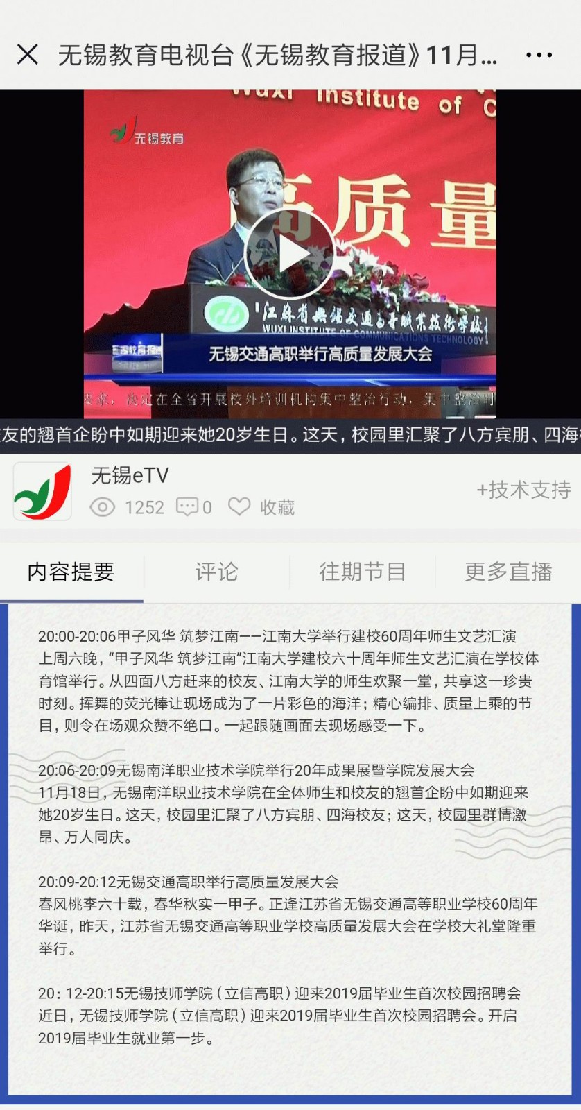 無錫教育電視臺《無錫教育報道》報道無錫交通高等職業(yè)學校舉行高質量發(fā)展大會(無錫eTV公眾號同步)