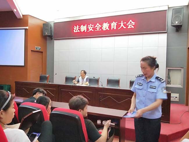 學(xué)期已接近尾聲,暑假即將來臨。為了進(jìn)一步加強(qiáng)學(xué)生的法制安全和增強(qiáng)法制安全責(zé)任感,關(guān)注學(xué)期末學(xué)生的心理波動,幫助同學(xué)們平穩(wěn)、有序地結(jié)束學(xué)習(xí)任務(wù),讓同學(xué)們過上一個安全、快樂的暑假,學(xué)校根據(jù)年度安全教育計劃,結(jié)合學(xué)校教育教學(xué)階段工作實(shí)際,6月28日下午,邀請無錫市梅園派出所胡雨虹警官來校做教育講座。