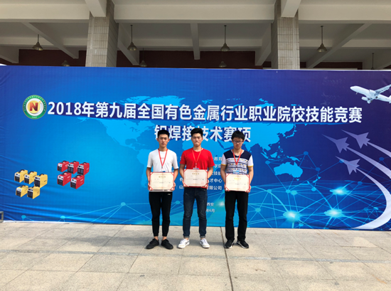 ? ?全國第九屆有色金屬行業(yè)職業(yè)院校技能競賽鋁焊接賽項(xiàng)于2018年6月12日—6月15日在西安航空職業(yè)技術(shù)學(xué)院隆重舉行,來自全國19所院校的53名選手展開了激烈地角逐,我校代表隊(duì)頂著當(dāng)?shù)?8度的高溫,沉著應(yīng)對,認(rèn)真準(zhǔn)備,細(xì)心研究,經(jīng)過2天的艱苦比賽,我校吳江、卞通、劉廷龍三名選手均獲得了二等獎。通過本次競賽,學(xué)校獲得了與全國有色金屬行業(yè)院校交流專業(yè)理念,切磋專業(yè)技術(shù)的機(jī)會,選手們也通過這個平臺展現(xiàn)了我校拼搏奮進(jìn)的精神,展示了他們銳意進(jìn)取的風(fēng)采,為學(xué)校在行業(yè)中贏得了良好的聲譽(yù)。