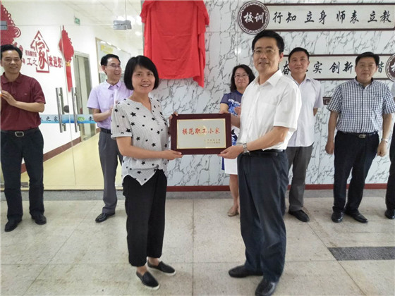 莊美昭主任為機電工程學院分工會、船舶工程學院分工會頒發(fā)了江蘇省模范職工小家和省運輸行業(yè)模范職工小家獎牌。莊主任和李虎書記共同為職工之家(教師發(fā)展中心)揭牌。