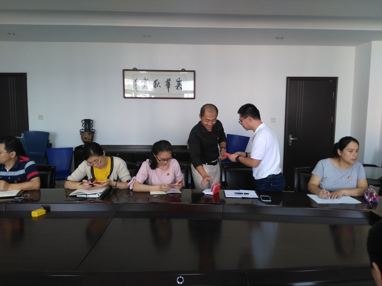 會議有兩項議程:一是為每一位黨員頒發(fā)了黨員活動證,進(jìn)一步加強(qiáng)黨的組織生活;二是認(rèn)真學(xué)習(xí)習(xí)近平總書記“7.26”重要講話精神。