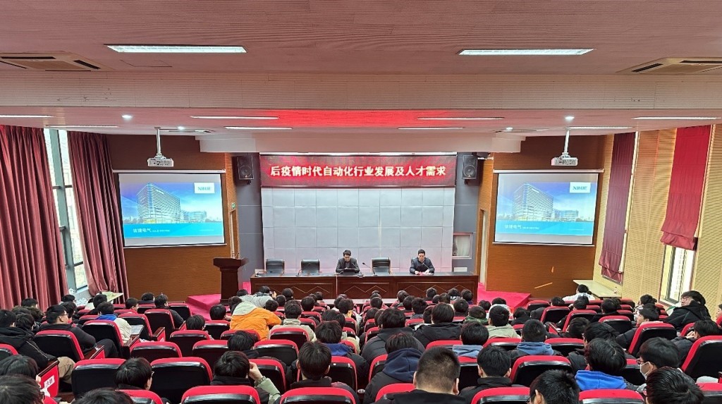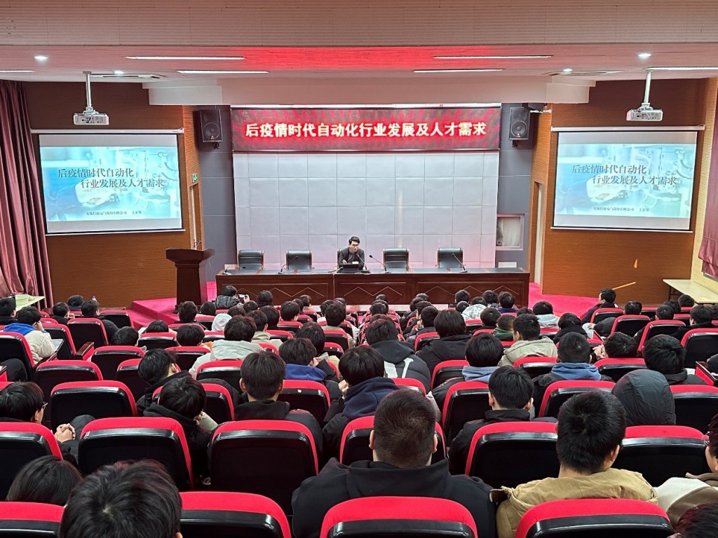 為幫助在校學(xué)生了解自動(dòng)化行業(yè)發(fā)展與人才需求知識(shí),樹(shù)立學(xué)好專業(yè)知識(shí)技能的信心,2023年12月28日下午,機(jī)電工程學(xué)院邀請(qǐng)無(wú)錫信捷電氣股份有限公司公共及教育事業(yè)部部長(zhǎng)王正堂工程師來(lái)校,為學(xué)院約200名學(xué)生舉辦了“后疫情時(shí)代自動(dòng)化行業(yè)發(fā)展及人才需求”的學(xué)術(shù)講座。講座由機(jī)電工程學(xué)院院長(zhǎng)夏春榮主持。