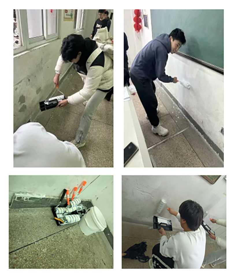 按照中國的傳統(tǒng)習(xí)俗,人們過新年要穿新衣。在這冬季期末考試結(jié)束準(zhǔn)備回家過年之際,222311班的同學(xué)們,在1月20日下午最后一場考試后,一起動手,給教室的墻壁刷白漆,使教室的面貌煥然一新。選擇這個時間刷漆,一方面是擔(dān)心上課期間刷的油漆會影響同學(xué)們的身體健康,另一方面是要給刷上墻的新油漆充足的晾曬時間,所以在一個月前便定好了考試結(jié)束后給教室刷墻漆,美化教室環(huán)境。