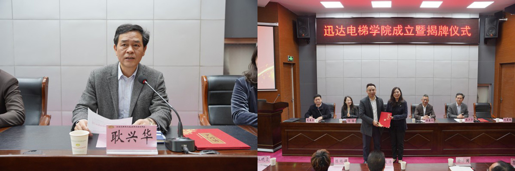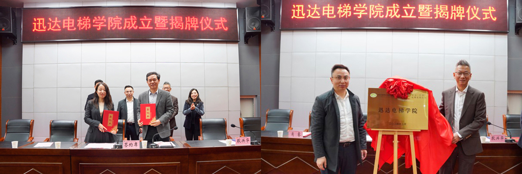 儀式上,副校長耿興華、迅達(中國)電梯有限公司蘇滬區(qū)人力資源高級經(jīng)理肖睿代表校企雙方簽署了共建學(xué)院協(xié)議,校長李進、迅達(中國)電梯有限公司蘇滬區(qū)總經(jīng)理徐春劍共同為迅達電梯學(xué)院揭牌。
