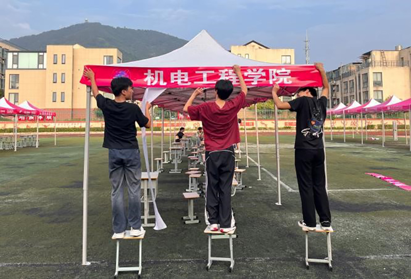 布置過程中,助班們分工協(xié)作,有的搭建展臺,有的張貼標識,有的擺放座椅,有的整理現(xiàn)場衛(wèi)生,每一個細節(jié)都力求做到最好。經(jīng)過近三個小時的忙碌,新生報到現(xiàn)場布置完畢,整潔有序、充滿活力的環(huán)境,不僅為第二天的報到工作做好了場地準備,也讓校園充滿了迎接新生的喜悅氛圍。