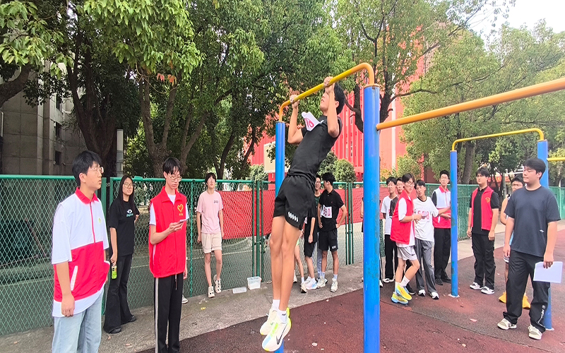 在各個比賽項目中,新生們不斷挑戰(zhàn)自身極限的身影,成為賽場上最動人的風(fēng)景。一分鐘跳繩項目里,不少新生從賽前的 “勉強達標(biāo)”,通過反復(fù)練習(xí),最終在賽場上實現(xiàn)突破,部分選手的成績較賽前提升顯著;男子組引體向上項目中,多名選手在完成基礎(chǔ)次數(shù)后,即便手臂顫抖、額頭冒汗,仍咬牙堅持,在現(xiàn)場師生的吶喊助威中,一次次突破自己的 “最高紀(jì)錄”。