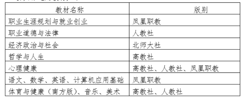 1、根據(jù)教育部及省教育廳關(guān)于職教教材選用相關(guān)要求,德育課、公共課選用教材如下:
