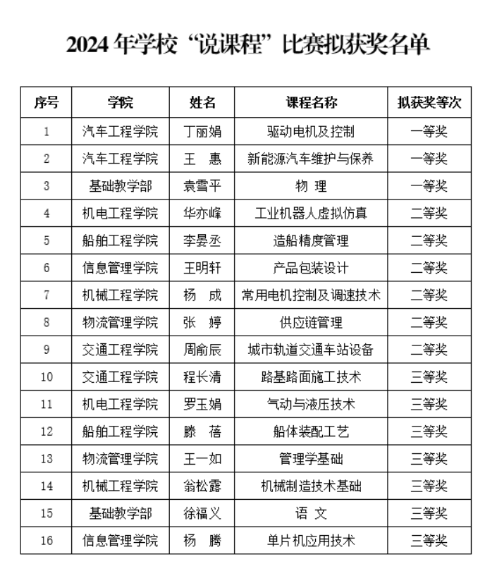 附件:2024年學(xué)校“說課程”比賽擬獲獎名單