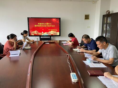 會議集中學(xué)習(xí)了教育部印發(fā)的《新時(shí)代高校教師職業(yè)行為十項(xiàng)準(zhǔn)則》,“教育部關(guān)于建立健全高校師德建設(shè)長效機(jī)制的意見”,教育部等七部門印發(fā)《關(guān)于加強(qiáng)和改進(jìn)新時(shí)代師德師風(fēng)建設(shè)的意見》。會上張俊、劉星、胡北京三位老師進(jìn)行了專題學(xué)習(xí)交流。會議組織全體教師簽訂了《師德師風(fēng)承諾書》,全體教師從遵章守紀(jì)、愛崗敬業(yè)、關(guān)愛學(xué)生、為人師表、勇于創(chuàng)新、嚴(yán)謹(jǐn)治學(xué)、團(tuán)結(jié)協(xié)作、廉潔從教等八個(gè)方面鄭重承諾:積極履行崗位職責(zé),塑造良好的師德師風(fēng)形象,爭做一名師德高尚的教育工作者。