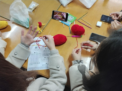 活動(dòng)開始,指導(dǎo)老師邵平平給同學(xué)們示范了如何拿鉤針,如何起針,以及環(huán)形起針的方法。結(jié)合社團(tuán)購買的材料,指導(dǎo)老師講解了如何看圖紙和鉤織的一些小技巧。看完老師耐心細(xì)致的講解,大家都充滿興趣,迫不及待地動(dòng)起手來。在活動(dòng)中,社員們積極嘗試使用鉤針,練習(xí)基礎(chǔ)鉤針技巧,大家互動(dòng)交流鉤編的方法和步驟,有問題及時(shí)與老師請(qǐng)教。