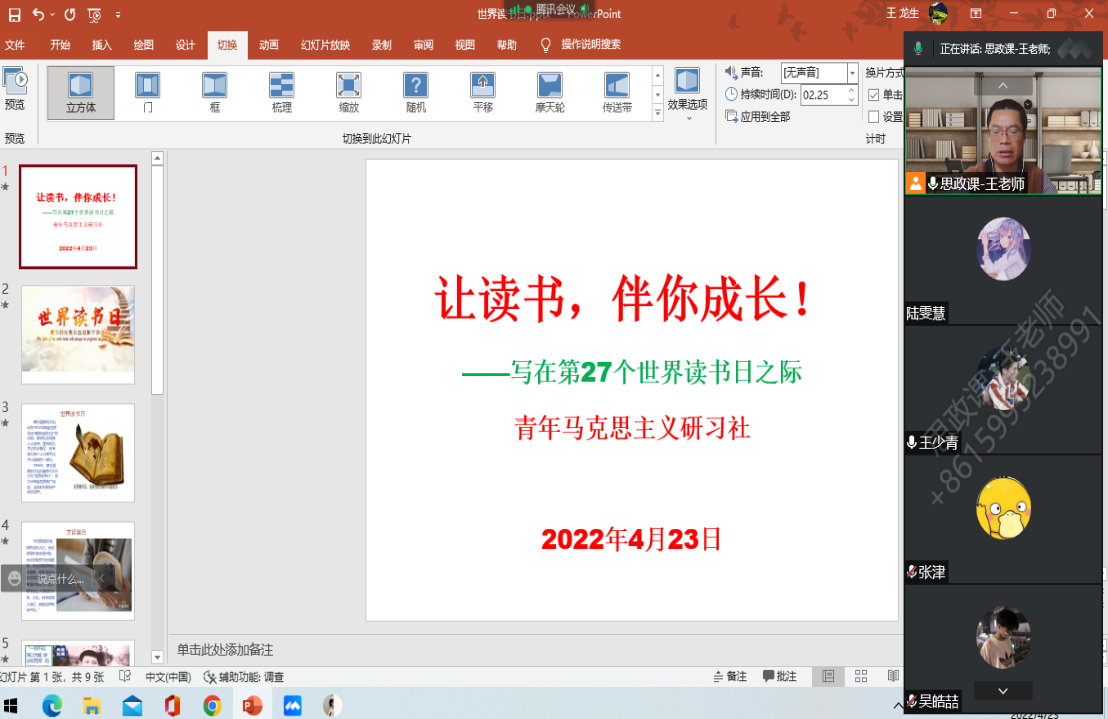 2022年4月23日下午16:30分,青年馬克思主義研習(xí)社指導(dǎo)老師王龍生組織社團成員,線上開展“讓讀書,伴你成長”的主題社團活動。