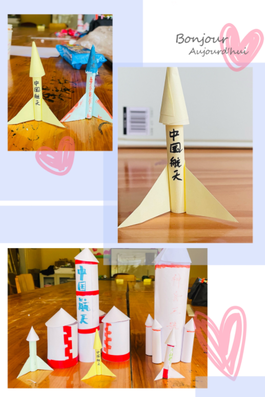 活動(dòng)中,袁雪平老師首先帶領(lǐng)大家學(xué)習(xí)運(yùn)載火箭的諸多原理,比如火箭的構(gòu)造、火箭起飛的動(dòng)力、衛(wèi)星如何與火箭分離等。隨后,同學(xué)們根據(jù)提供的A4紙、膠帶等素材,通過(guò)裁、剪、粘、撕、貼等一系列活動(dòng),逐步完成箭身、助推器等部位的制作的拼裝,同時(shí)還給火箭進(jìn)行了裝飾。最后,在袁老師的帶領(lǐng)下,同學(xué)們利用制作的小火箭模擬“發(fā)射”,讓小火箭“飛”起來(lái),活動(dòng)現(xiàn)場(chǎng)氣氛活躍。