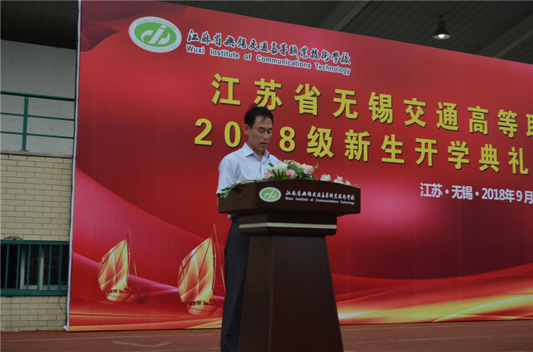 2018年9月10日,江蘇省無錫交通高等職業(yè)技術(shù)學(xué)校“2018級新生開學(xué)典禮暨開學(xué)第一課”在學(xué)校操場舉行。全體校領(lǐng)導(dǎo)、各處室主要負(fù)責(zé)人、各學(xué)院領(lǐng)導(dǎo)班子成員、新生班主任、教師代表和1400余名新生參加。大會由黨委書記李虎主持。