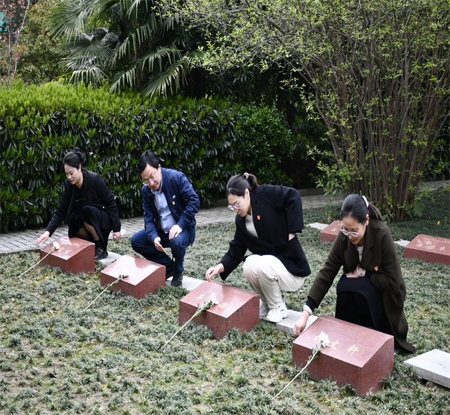 在紀念塔前,學生工作處黨支部書記、校團委副書記孫霞同志帶領黨員和團員重溫入黨誓詞、入團誓詞,錚錚誓詞在烈士陵園久久回蕩。隨即,大家繞紀念塔一周,緬懷先烈,向為國犧牲的人民英雄敬獻鮮花。伏下身來,細心擦去碑體上的灰塵,每一處擦洗都表達著對烈士的緬懷和敬仰。