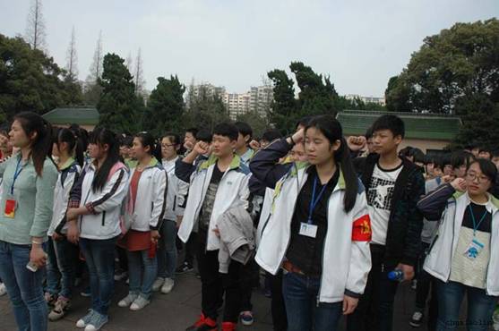 活動(dòng)中,徒步近一小時(shí),廣大團(tuán)員青年高舉團(tuán)旗,口號(hào)嘹亮、步伐整齊,充分展示了我校廣大團(tuán)員青年昂揚(yáng)的精神面貌,更展示了學(xué)校優(yōu)良的校風(fēng)。廣大團(tuán)員青年在烈士紀(jì)念碑前敬獻(xiàn)花圈、宣讀祭文、舉行莊嚴(yán)的新團(tuán)員入團(tuán)宣誓儀式以及老團(tuán)員重溫入團(tuán)宣誓?!拔抑驹讣尤胫袊?guó)共產(chǎn)主義青年團(tuán),堅(jiān)決擁護(hù)中國(guó)共產(chǎn)黨的領(lǐng)導(dǎo)------ ”嘹亮的宣誓久久縈繞耳畔,鞭策著我們這些新時(shí)代的青年,銘記歷史,把握今天這來(lái)之不易的一切,務(wù)實(shí)求索,去開(kāi)創(chuàng)祖國(guó)繁榮富強(qiáng)的未來(lái),去開(kāi)創(chuàng)我們燦爛美好的生活,共圓祖國(guó)和我們心中的夢(mèng)想。