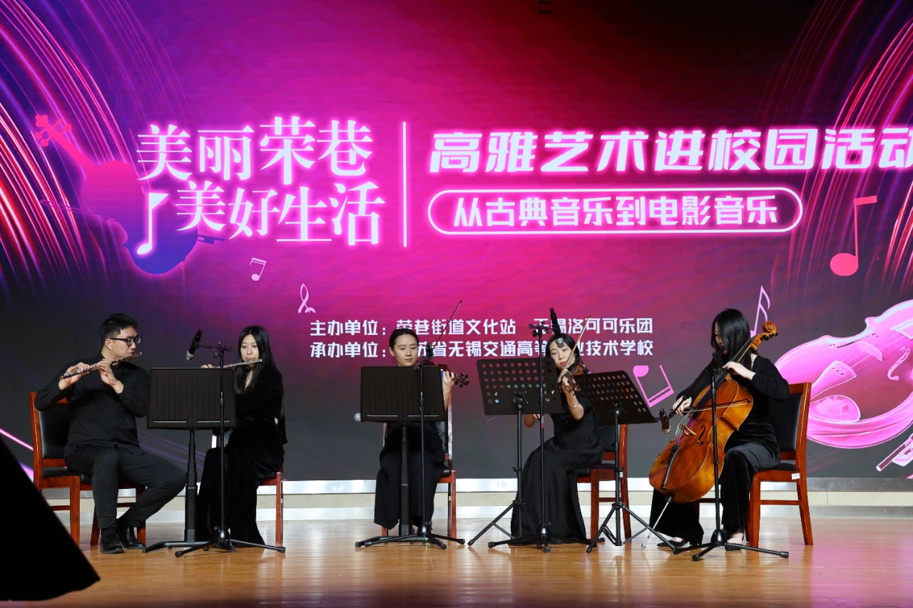 開幕式結(jié)束后,無錫洛可可樂團(tuán)的演奏家們?yōu)閹熒鷤儙硪粓鼍实墓?/span>弦樂演奏表演,精彩的演出贏得全場師生的陣陣掌聲與喝彩,現(xiàn)場感受高雅藝術(shù)的魅力。