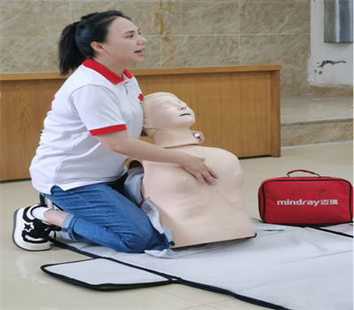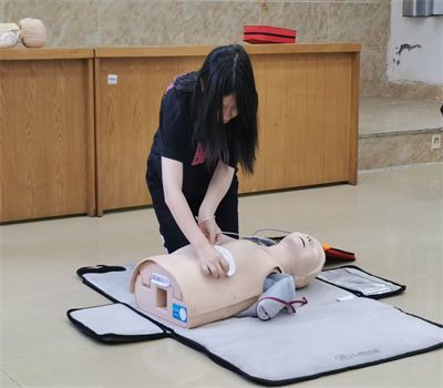 活動(dòng)初始,紅十字會(huì)培訓(xùn)老師向師生們介紹了紅十字會(huì)的起源發(fā)展、工作職責(zé)、標(biāo)志及“人道、博愛、奉獻(xiàn)”的紅十字會(huì)精神,使同學(xué)們對紅十字會(huì)有了初步了解。隨后,紅十字會(huì)培訓(xùn)老師結(jié)合理論知識(shí)和實(shí)際救護(hù)技巧對生活中遇到突發(fā)狀況急救、徒手心肺復(fù)蘇、溺水緊急救護(hù)等內(nèi)容作了詳細(xì)的講解。為了使師生們更加深入的了解各項(xiàng)救護(hù)技巧、掌握心肺復(fù)蘇要領(lǐng)、培訓(xùn)老師和師生們在現(xiàn)場展開了深入互動(dòng),對心肺復(fù)蘇進(jìn)行了實(shí)操演練、手把手向同學(xué)們傳授了急救手法和注意事項(xiàng)。