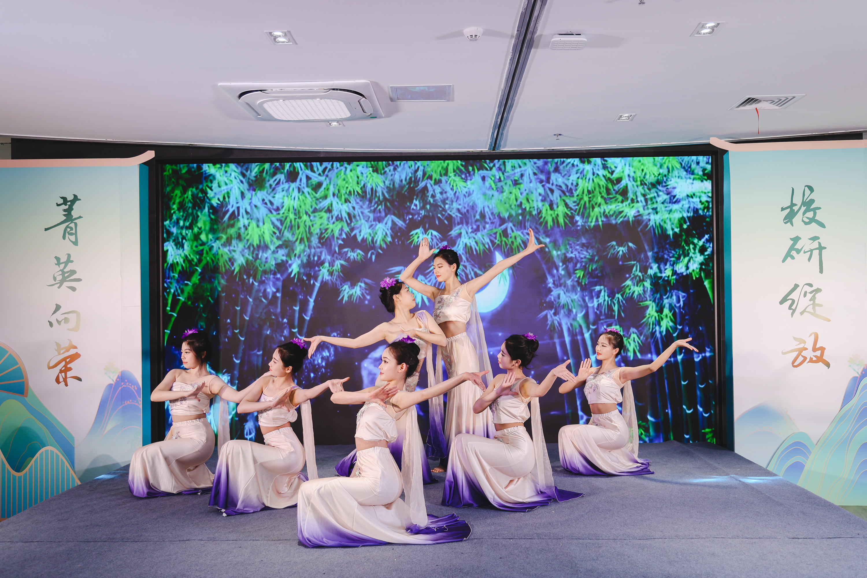 活動現(xiàn)場,學校行云舞社的7名學生演繹了優(yōu)美的傣族舞蹈《彩云之南》,將民族舞蹈的魅力彰顯得淋漓盡致,帶領(lǐng)觀眾們領(lǐng)略傣族文化絢麗而靈動的獨特氣韻,展現(xiàn)出交校青年學子傳承民族文化的堅定信心和決心。舞社指導教師楊格格受聘為“菁英合伙人”。