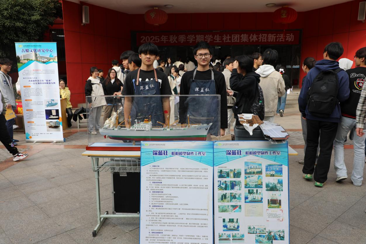 招新現(xiàn)場,各學(xué)生社團結(jié)合自身特色,通過展板展示、作品陳列、現(xiàn)場表演、互動體驗等多種形式,全面展示了社團風(fēng)采與成果。深藍(lán)社的精巧船模、科創(chuàng)工場的創(chuàng)新專利彰顯了同學(xué)們的實踐與創(chuàng)新能力;青年志愿者協(xié)會的志愿服務(wù)影像、國旗護衛(wèi)隊的颯爽英姿體現(xiàn)了交校學(xué)子的奉獻精神與家國情懷;春之聲合唱團的悠揚歌聲、藝靈啦啦操社的動感舞蹈、行云與嘉越舞社的優(yōu)美舞姿、漢服社的華美禮儀展示,則共同呈現(xiàn)了校園文化的藝術(shù)多元與青春活力。此外,融媒體工作室、橋牌社、讀書會、茶藝社、各類體育社團等也以各自獨特的方式,吸引了大量新生駐足咨詢與報名。