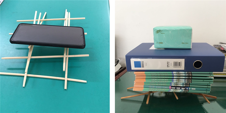 用筷子搭建橋梁,不僅是進(jìn)行簡單的搭建,更重要的是構(gòu)思如何搭建足夠結(jié)實(shí)的橋梁。活動結(jié)束后,師生分享活動心得,總結(jié)筷子間摩擦力的大小、筷子的形狀、桌面的摩擦力大小等影響搭建質(zhì)量的因素。