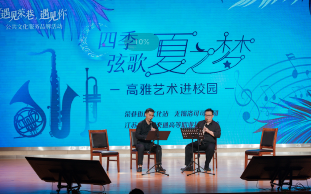 開幕式結(jié)束后,高雅藝術(shù)進校園活動拉開帷幕。無錫洛可可樂團的演奏家們?yōu)閹熒鷤儙硪粓鼍实墓軜费葑啾硌?,精彩的演出贏得全場師生的陣陣掌聲與喝彩,現(xiàn)場感受高雅藝術(shù)的魅力。