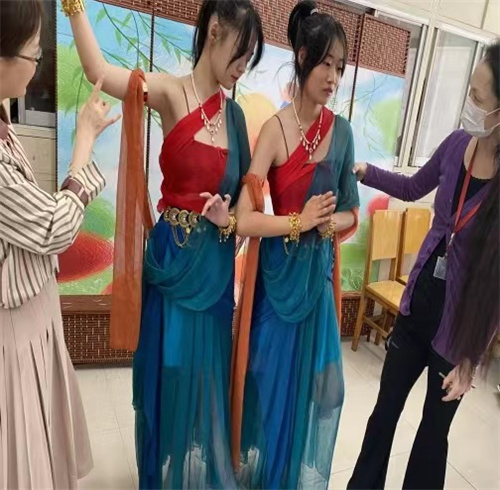 "敦者大也,煌者盛也;大而盛者謂之敦煌。大夢敦煌 盛世和光”漢服社和淑女堂的同學們在指導老師傅彩虹、王濤老師的帶領(lǐng)下,認真排練舞蹈《一夢敦煌》。