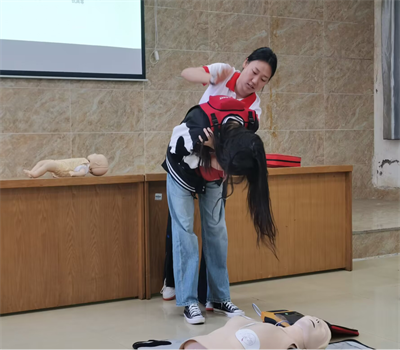 活動(dòng)初始,紅十字會(huì)培訓(xùn)老師向師生們介紹了紅十字會(huì)的起源發(fā)展、工作職責(zé)、標(biāo)志及“人道、博愛、奉獻(xiàn)”的紅十字會(huì)精神,使同學(xué)們對(duì)紅十字會(huì)有了初步了解。隨后,紅十字會(huì)培訓(xùn)老師結(jié)合理論知識(shí)和實(shí)際救護(hù)技巧對(duì)生活中遇到突發(fā)狀況急救、徒手心肺復(fù)蘇、溺水緊急救護(hù)等內(nèi)容作了詳細(xì)的講解。為了使師生們更加深入的了解各項(xiàng)救護(hù)技巧、掌握心肺復(fù)蘇要領(lǐng)、培訓(xùn)老師和師生們?cè)诂F(xiàn)場(chǎng)展開了深入互動(dòng),對(duì)心肺復(fù)蘇進(jìn)行了實(shí)操演練、手把手向同學(xué)們傳授了急救手法和注意事項(xiàng)。