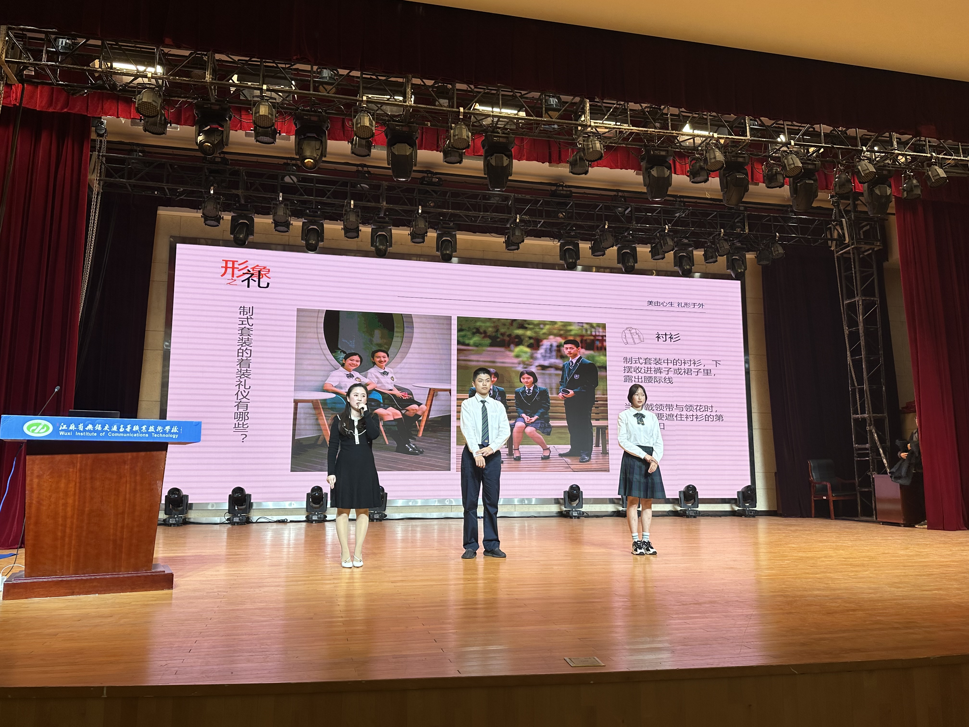 “不學(xué)禮,無以立”,為進(jìn)一步豐富學(xué)生的著裝禮儀知識(shí),切實(shí)提高學(xué)生的文明禮儀素養(yǎng),11月15日下午,學(xué)校在大禮堂開展了“美由心生 禮行于外”學(xué)生禮儀培訓(xùn)講座。講座邀請(qǐng)到了學(xué)校校服供貨商江蘇伊頓紀(jì)德品牌有限公司的美育禮儀師江馨老師,全校600余名學(xué)生參加了此次培訓(xùn)講座。本次講座由學(xué)生工作處副處長(zhǎng)籍鑫慧主持。