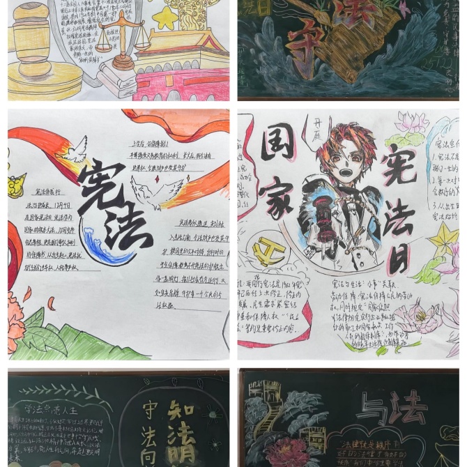為深入學(xué)習(xí)宣傳憲法知識(shí),弘揚(yáng)社會(huì)主義法治精神,學(xué)校還舉辦了“學(xué)憲法、講憲法、弘揚(yáng)法治精神”主題黑板報(bào)、手抄報(bào)比賽。同學(xué)們?cè)谙到y(tǒng)學(xué)習(xí)憲法知識(shí)和法治理念的基礎(chǔ)上,熱情投入創(chuàng)作,將所學(xué)、所思、所悟轉(zhuǎn)化為黑板上、畫紙上的生動(dòng)圖文。主題黑板報(bào)、手抄報(bào)比賽不僅是一次美觀的評(píng)比,更是一堂生動(dòng)的法治實(shí)踐課。此次活動(dòng)有效激發(fā)了學(xué)生學(xué)習(xí)憲法的主動(dòng)性和自覺性,營(yíng)造了尊法、學(xué)法、守法、用法的濃厚氛圍。